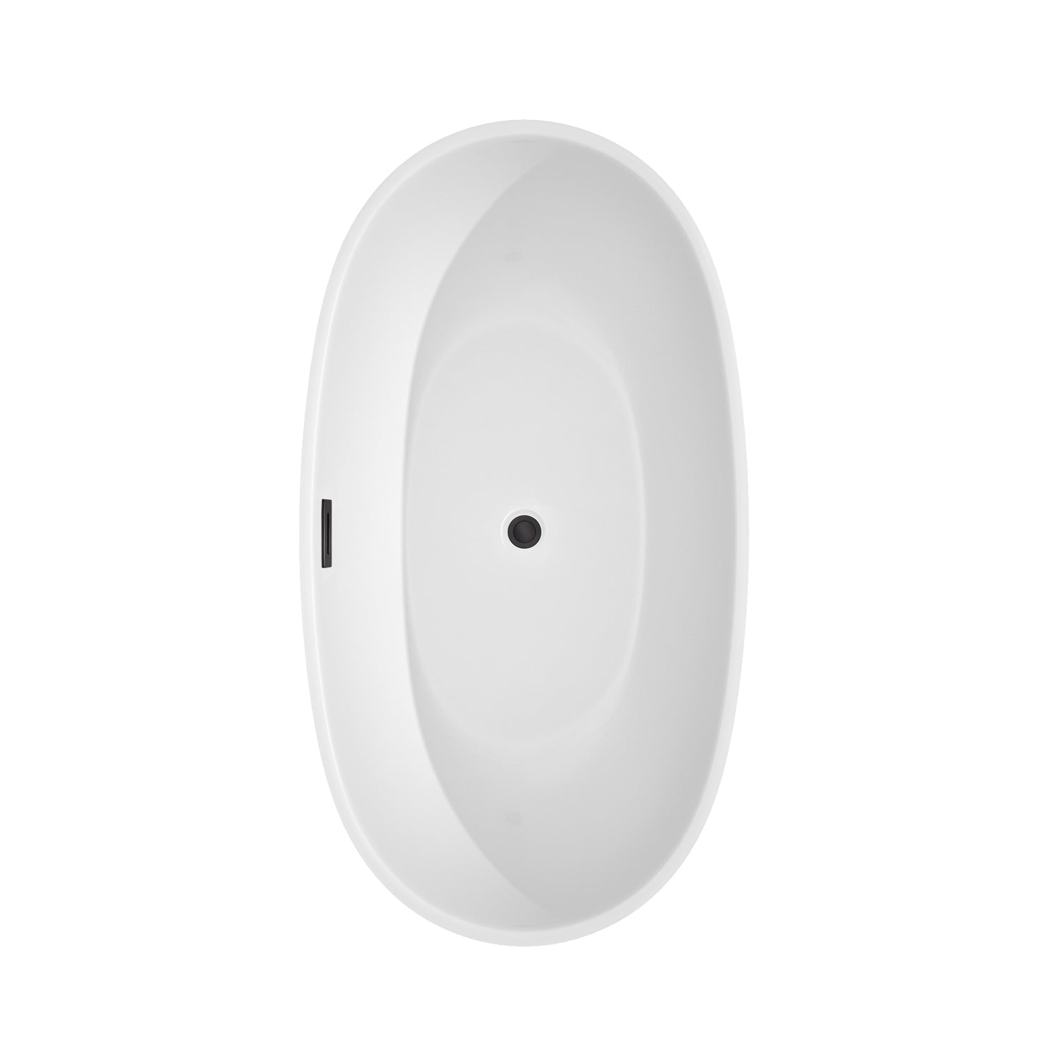 Wyndham Juno 59 Inch Freestanding Bathtub in White with Floor Mounted Faucet, Drain and Overflow Trim in Matte Black