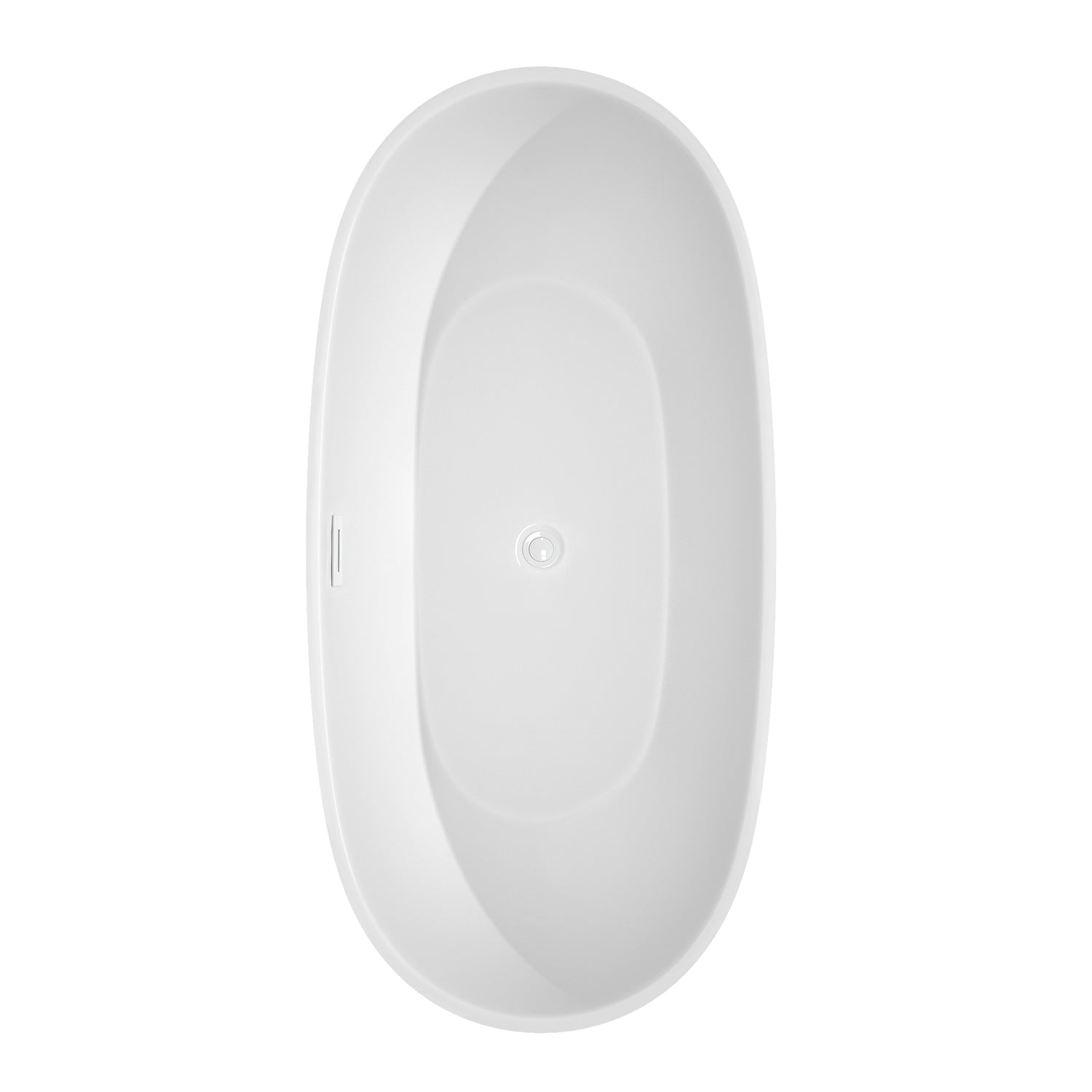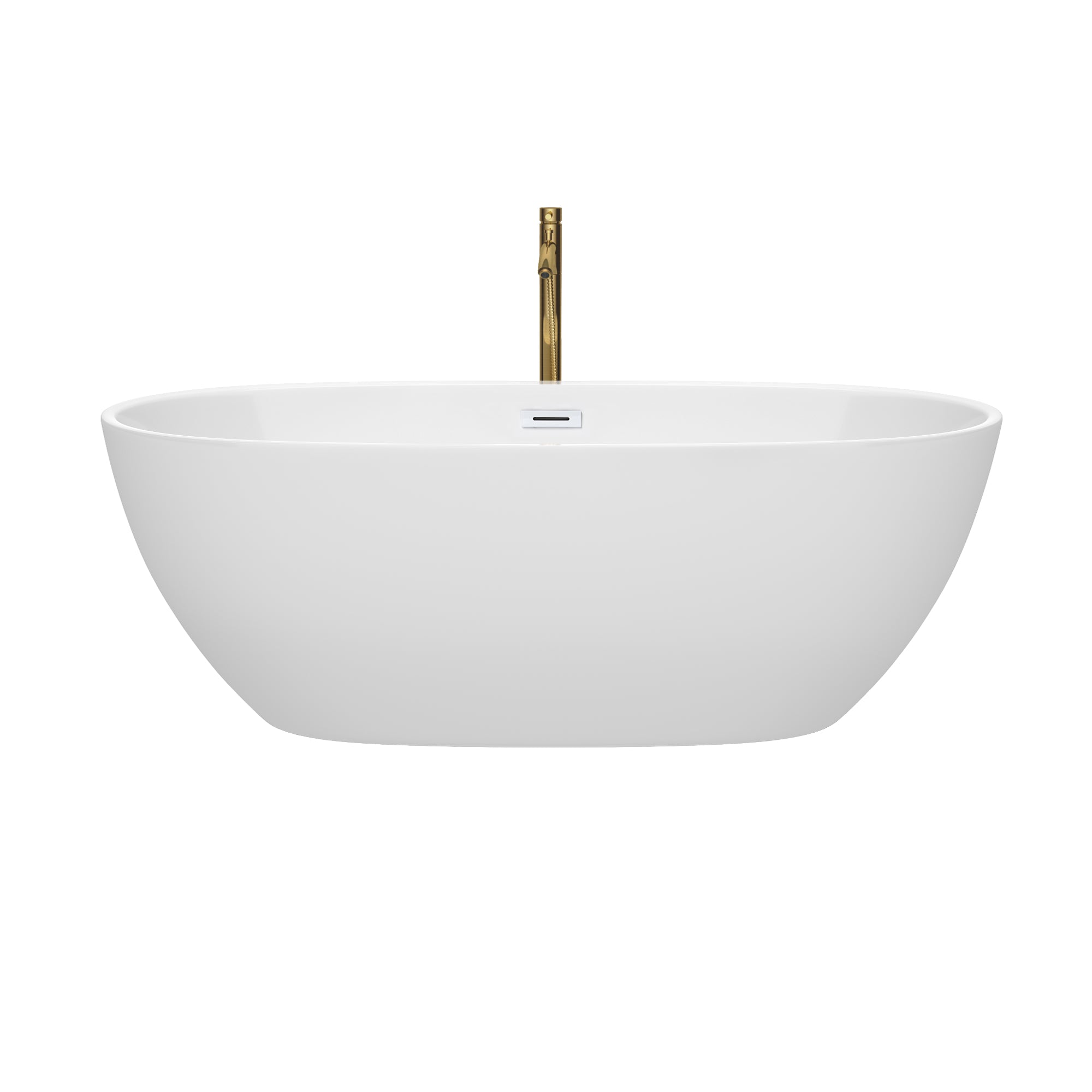Wyndham Juno 67 Inch Freestanding Bathtub in White with Shiny White Trim and Floor Mounted Faucet in Brushed Gold