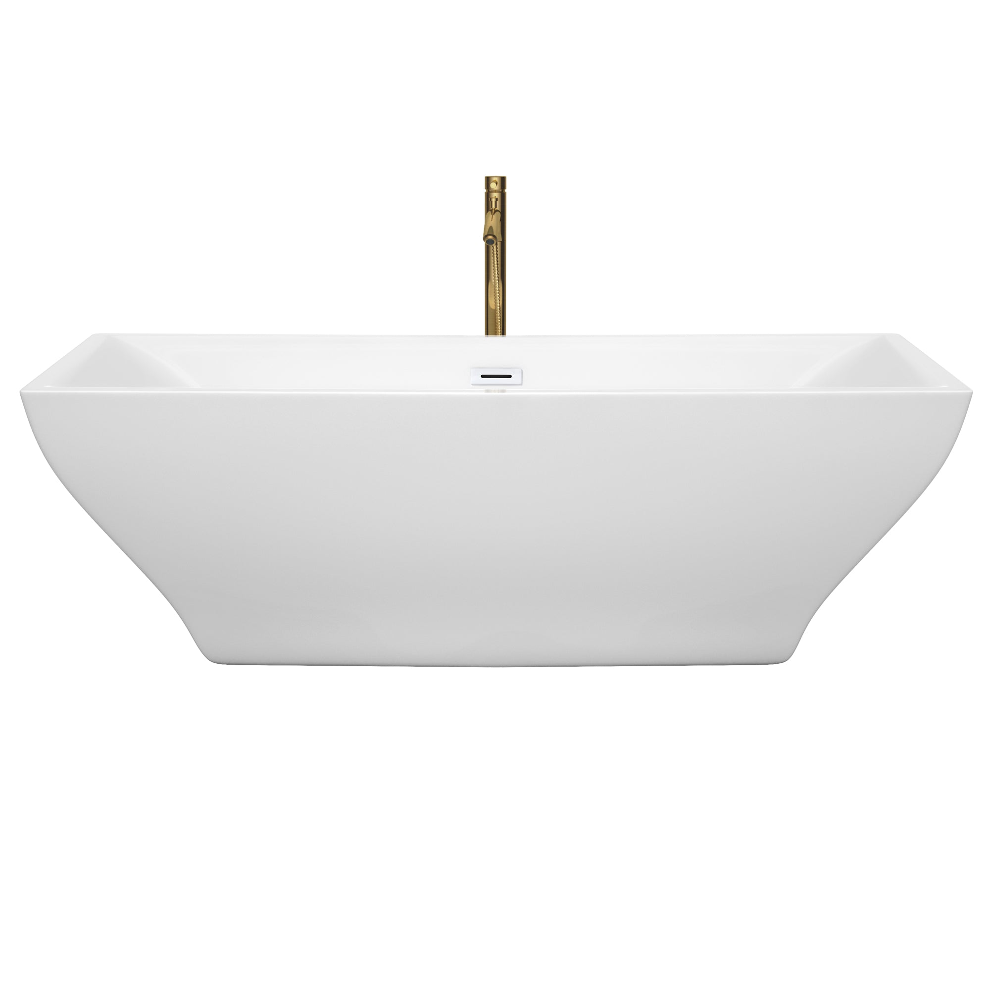 Wyndham Maryam 71 Inch Freestanding Bathtub in White with Shiny White Trim and Floor Mounted Faucet in Brushed Gold