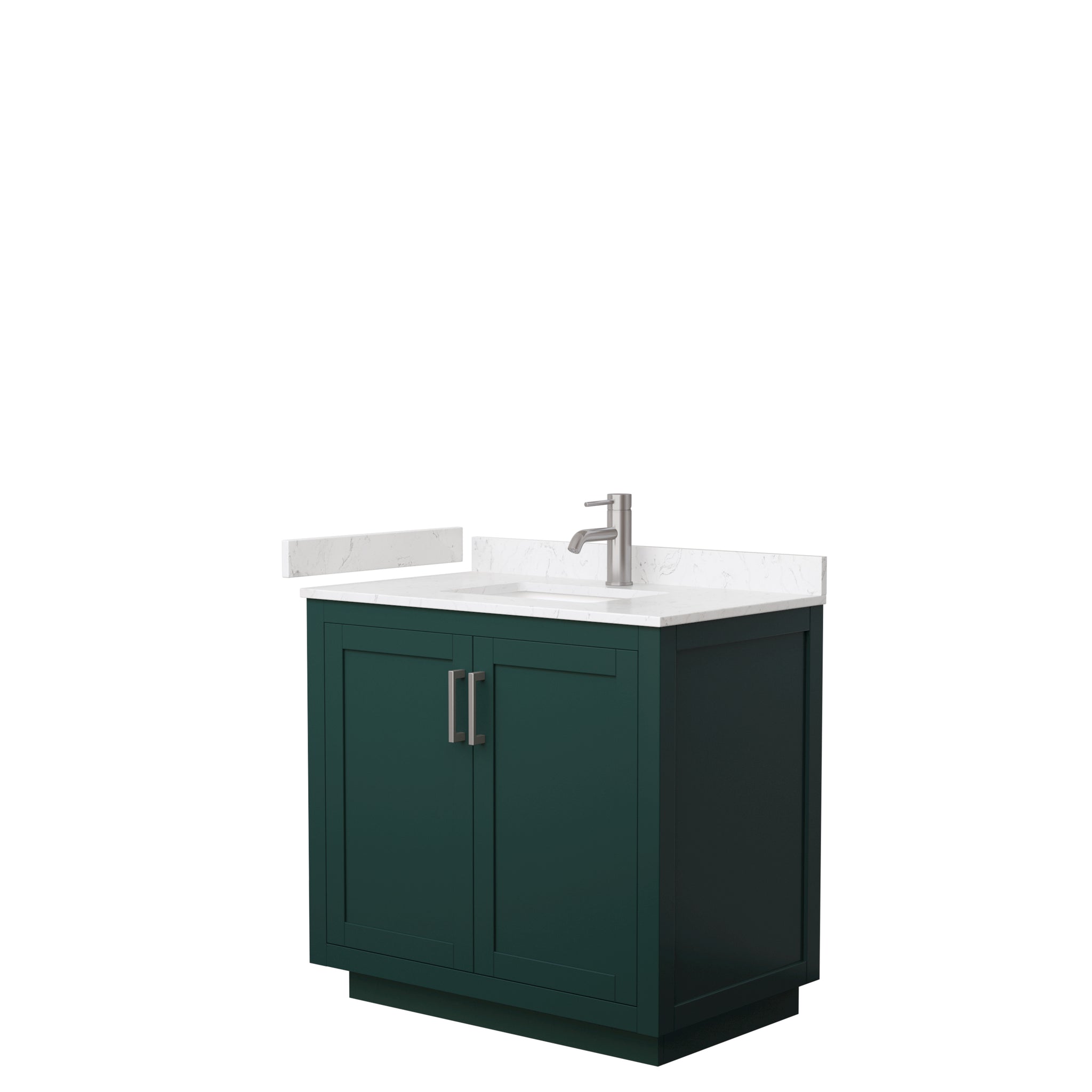 Wyndham Miranda 36 Inch Single Bathroom Vanity in Green, Light-Vein Carrara Cultured Marble Countertop, Undermount Square Sink, Brushed Nickel Trim