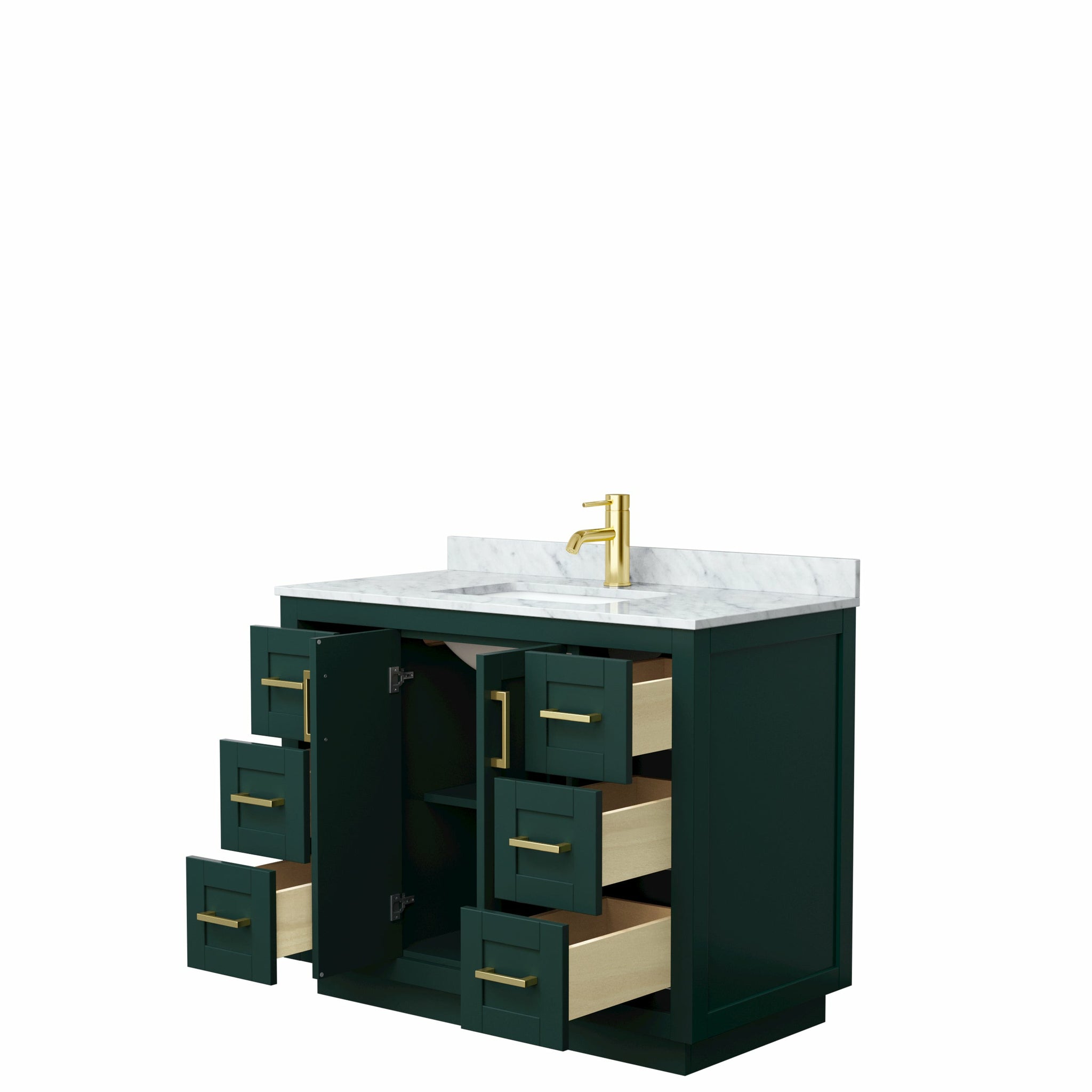 Wyndham Miranda 42 Inch Single Bathroom Vanity in Green, White Carrara Marble Countertop, Undermount Square Sink, Brushed Gold Trim