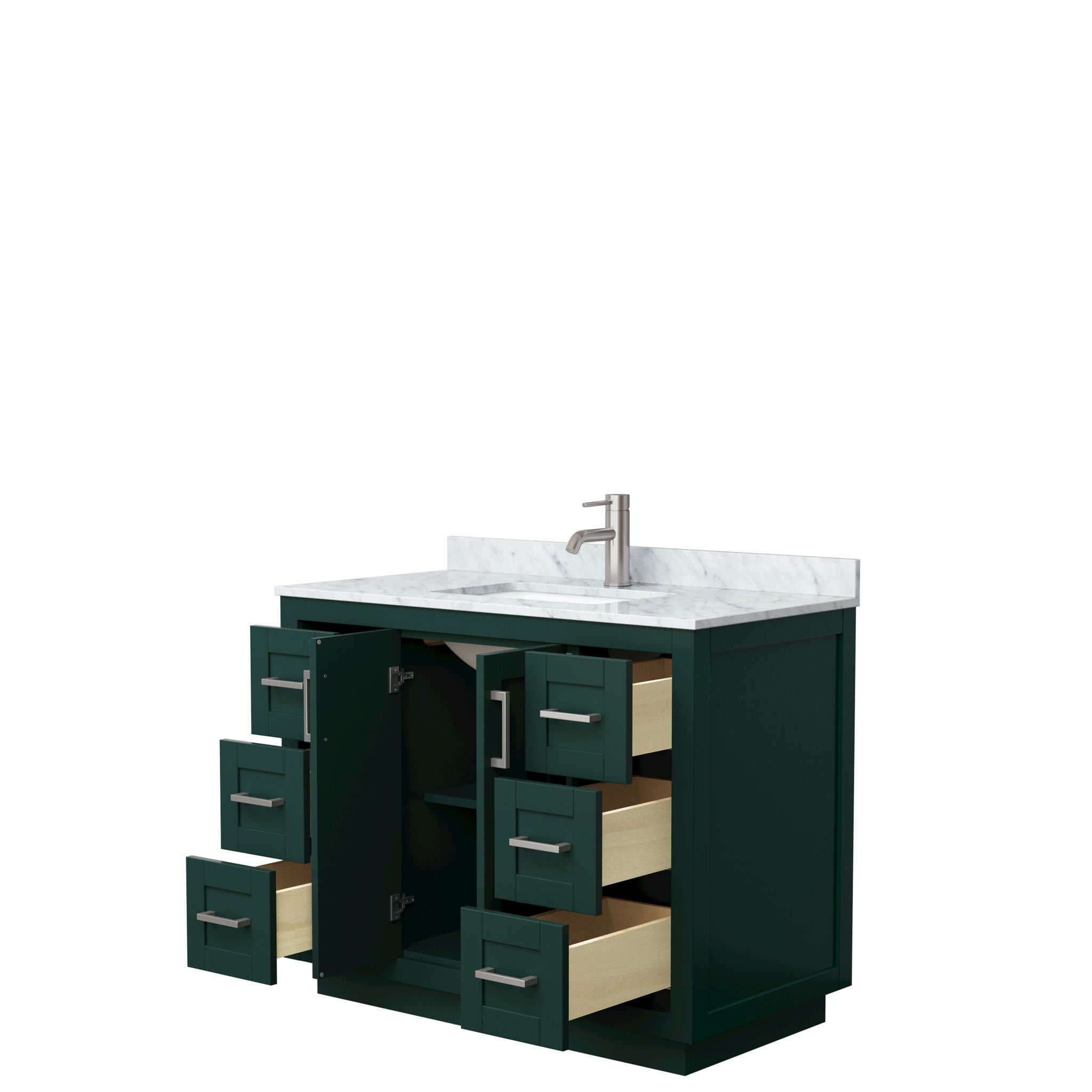 Wyndham Miranda 42 Inch Single Bathroom Vanity in Green, White Carrara Marble Countertop, Undermount Square Sink, Brushed Nickel Trim