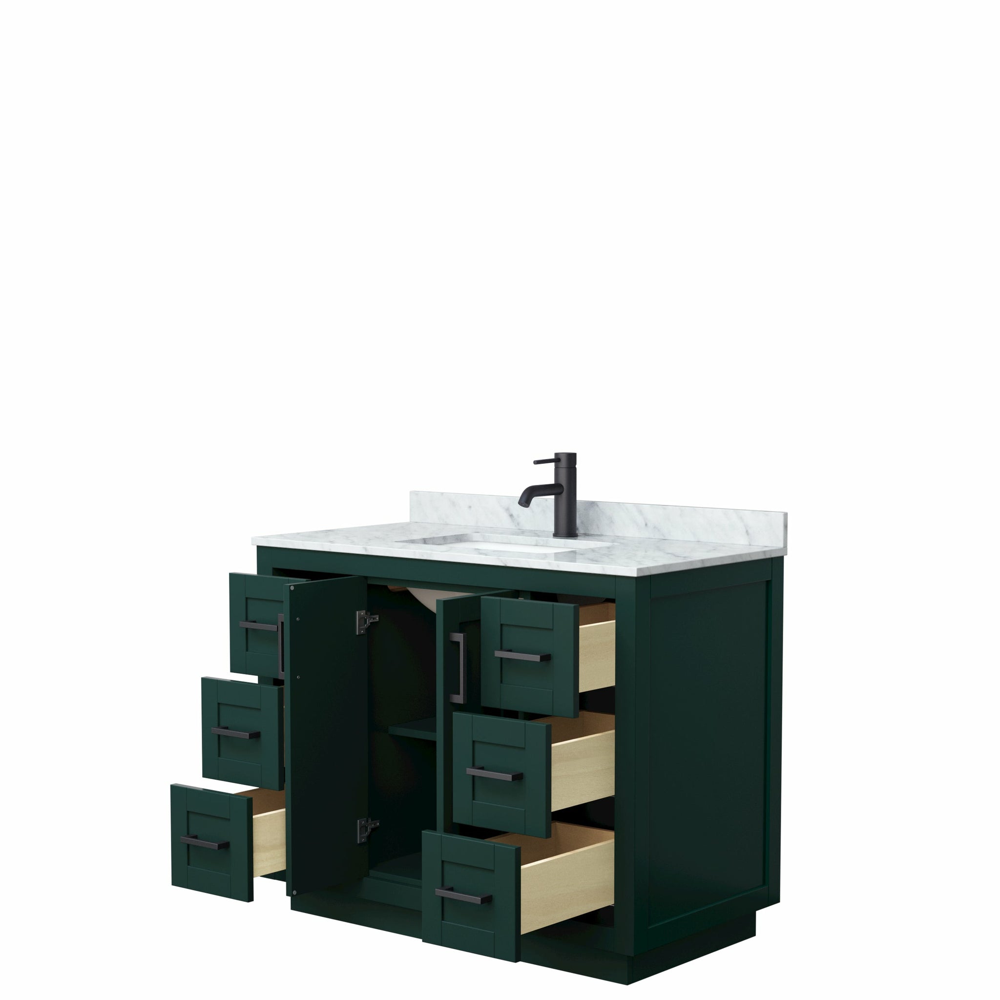 Wyndham Miranda 42 Inch Single Bathroom Vanity in Green, White Carrara Marble Countertop, Undermount Square Sink, Matte Black Trim