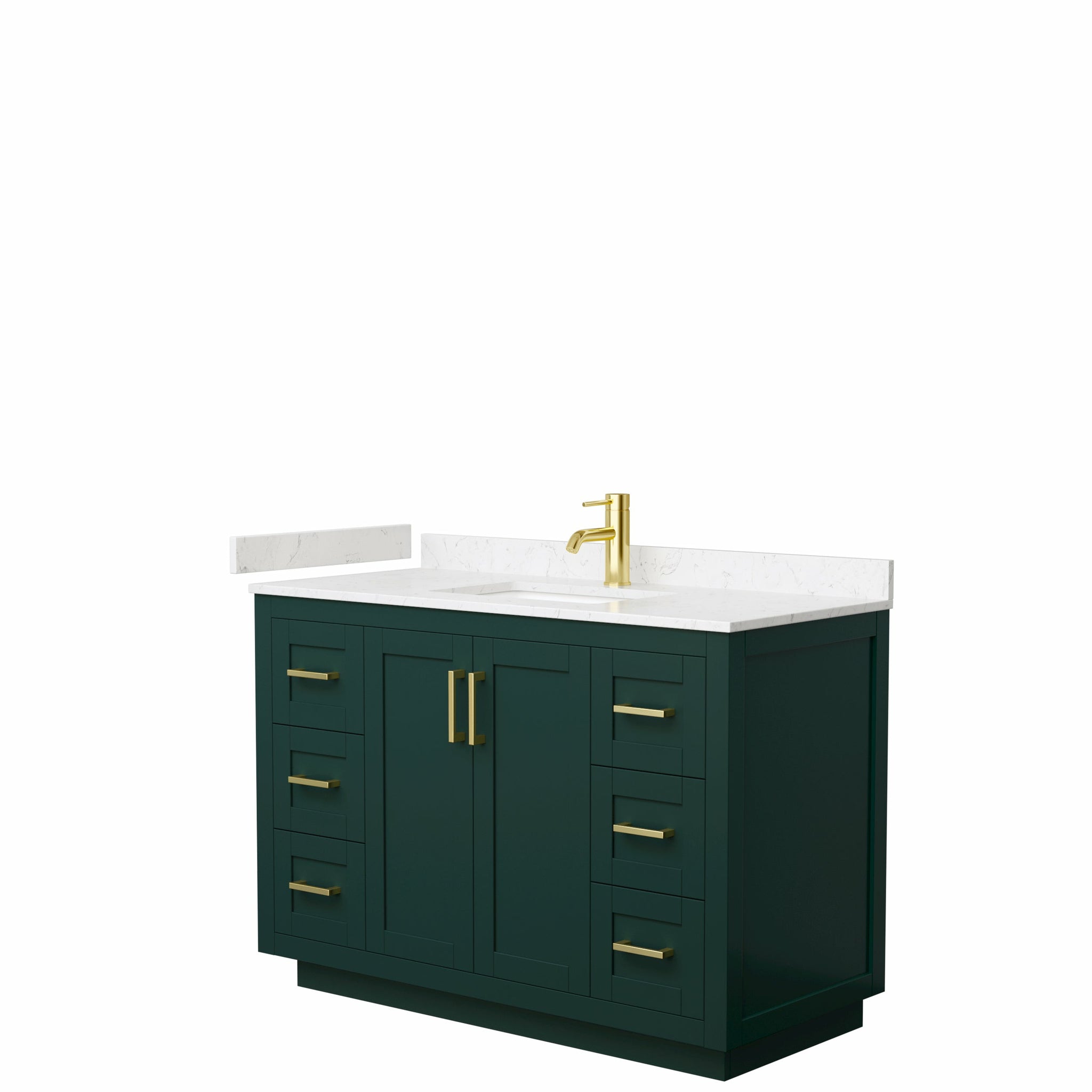 Wyndham Miranda 48 Inch Single Bathroom Vanity in Green, Light-Vein Carrara Cultured Marble Countertop, Undermount Square Sink, Brushed Gold Trim