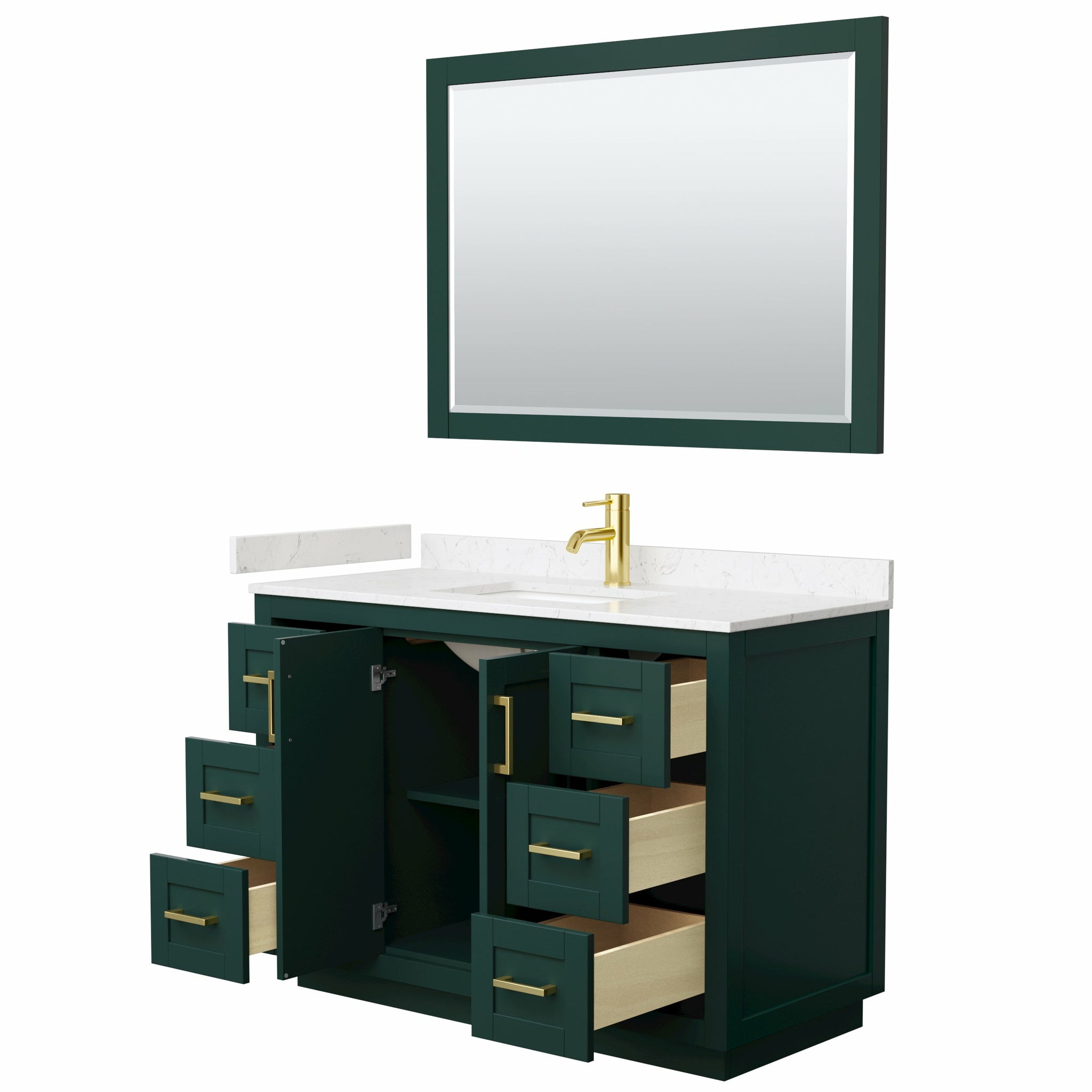 Wyndham Miranda 48 Inch Single Bathroom Vanity in Green, Light-Vein Carrara Cultured Marble Countertop, Undermount Square Sink, Brushed Gold Trim, 46 Inch Mirror