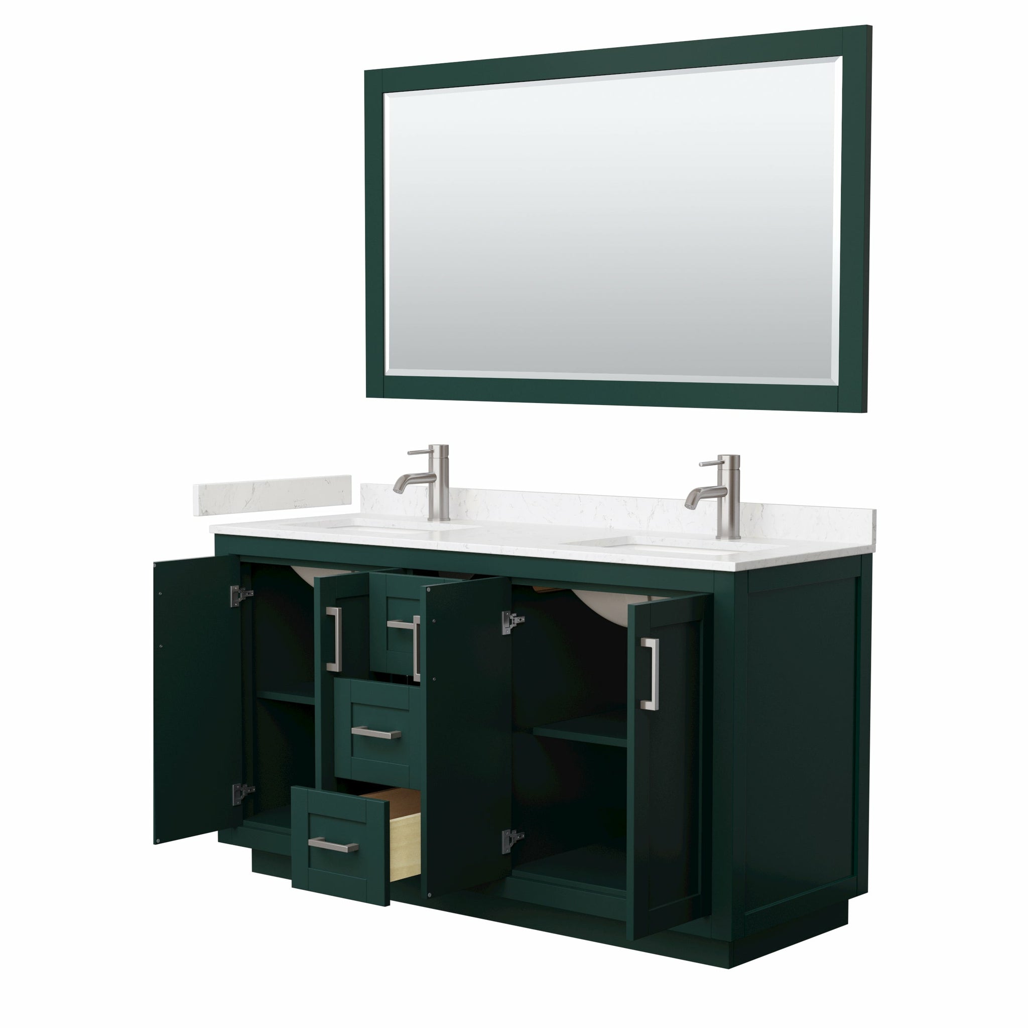 Wyndham Miranda 60 Inch Double Bathroom Vanity in Green, Light-Vein Carrara Cultured Marble Countertop, Undermount Square Sinks, Brushed Nickel Trim, 58 Inch Mirror