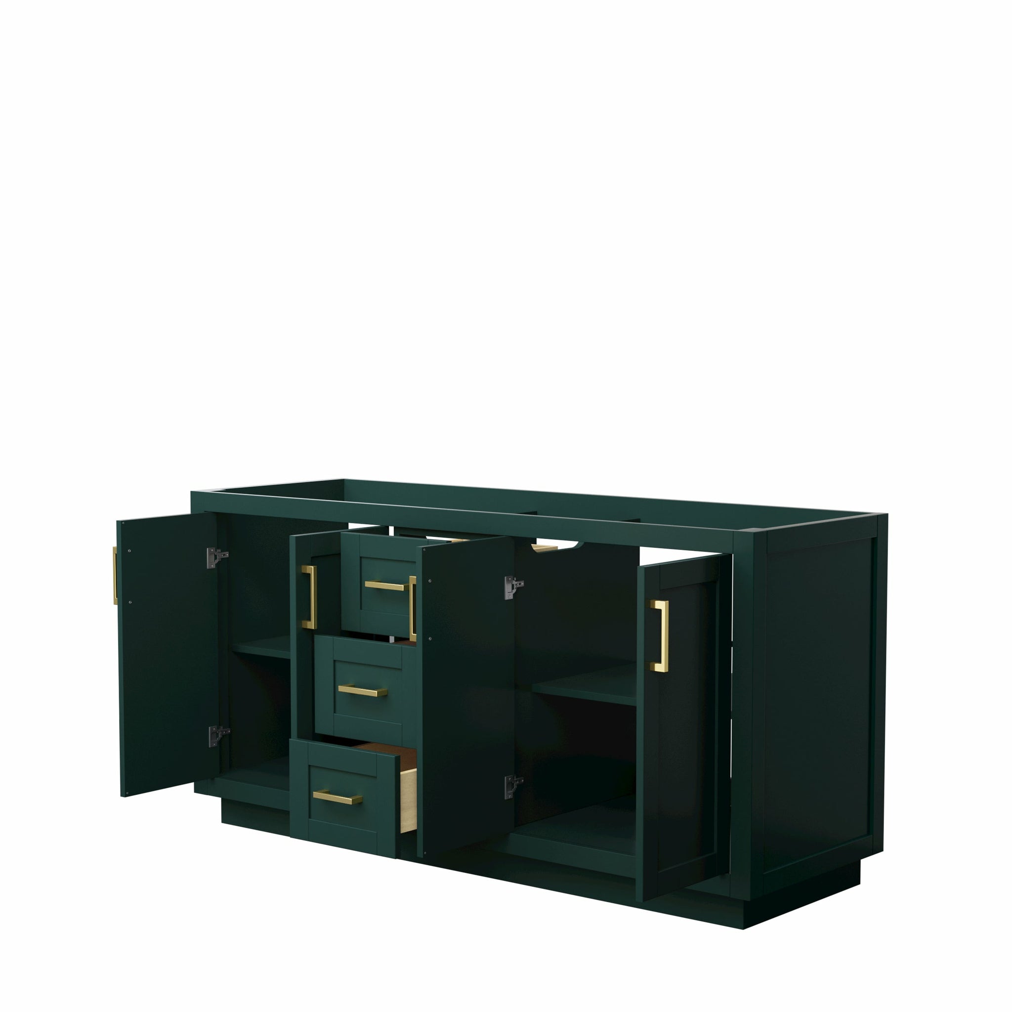Wyndham Miranda 66 Inch Double Bathroom Vanity in Green, No Countertop, No Sink, Brushed Gold Trim