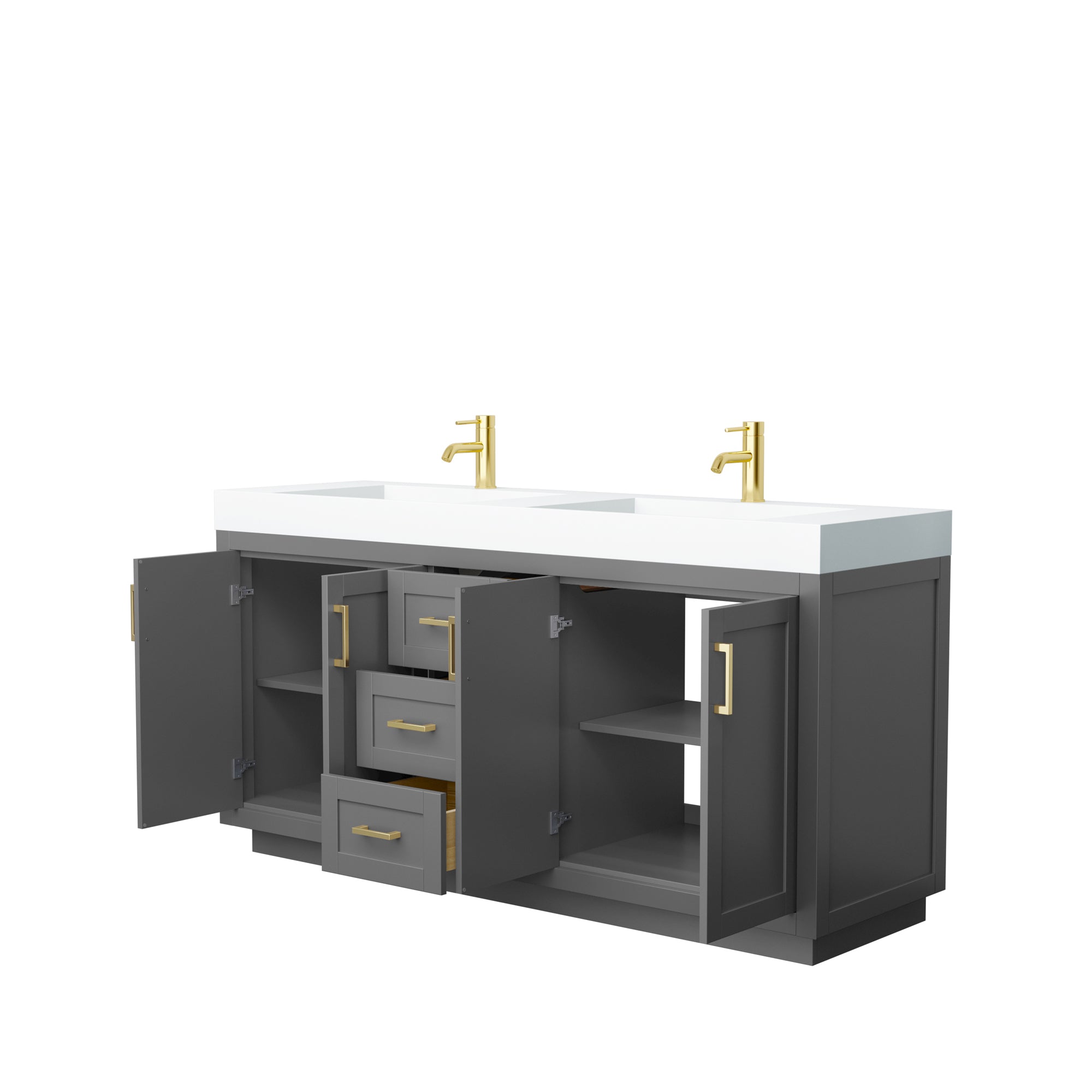 Wyndham Miranda 72 Inch Double Bathroom Vanity in Dark Gray, 4 Inch Thick Matte White Solid Surface Countertop, Integrated Sinks, Brushed Gold Trim