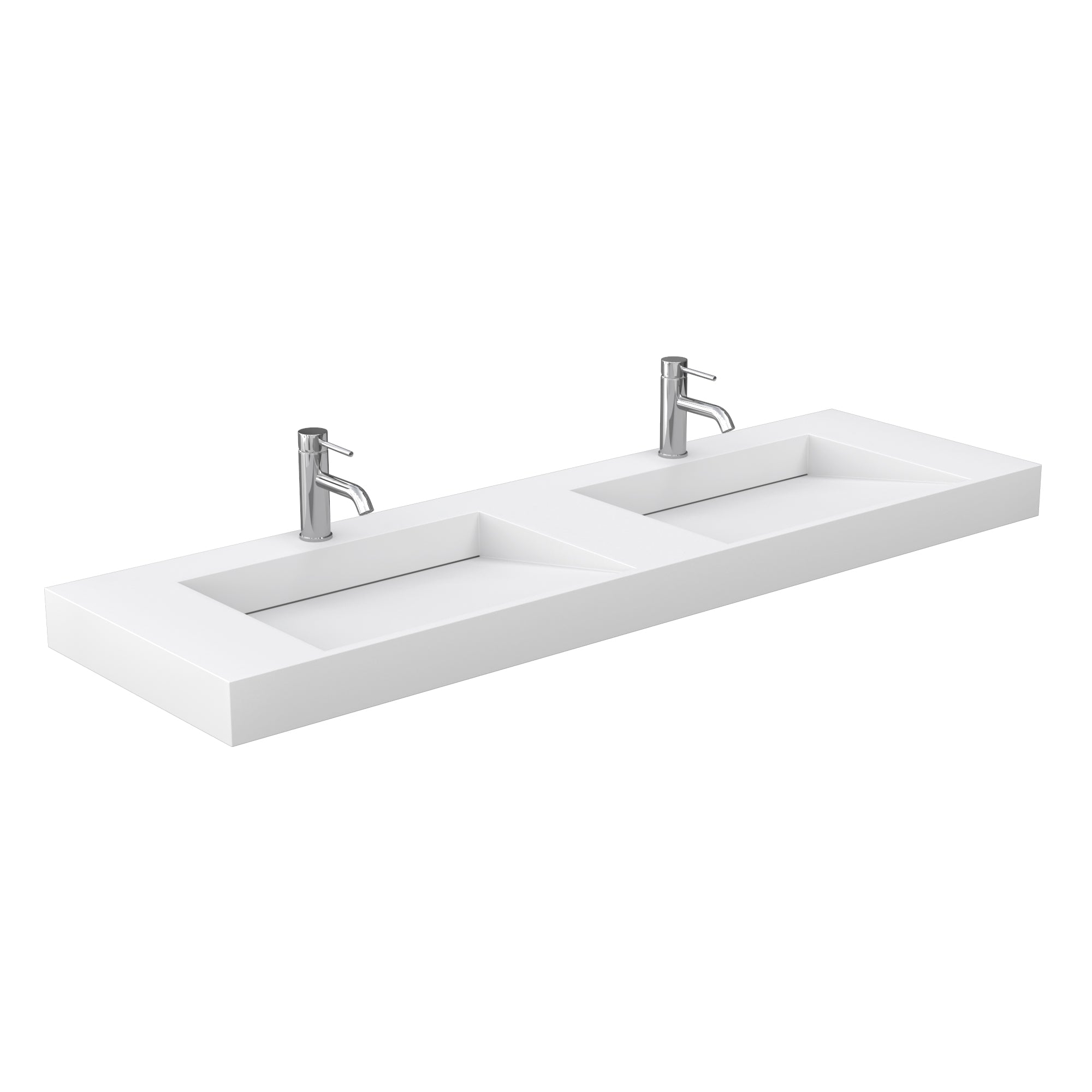 Wyndham Miranda 72 Inch Double Bathroom Vanity in Dark Gray, 4 Inch Thick Matte White Solid Surface Countertop, Integrated Sinks, Brushed Gold Trim, 70 Inch Mirror