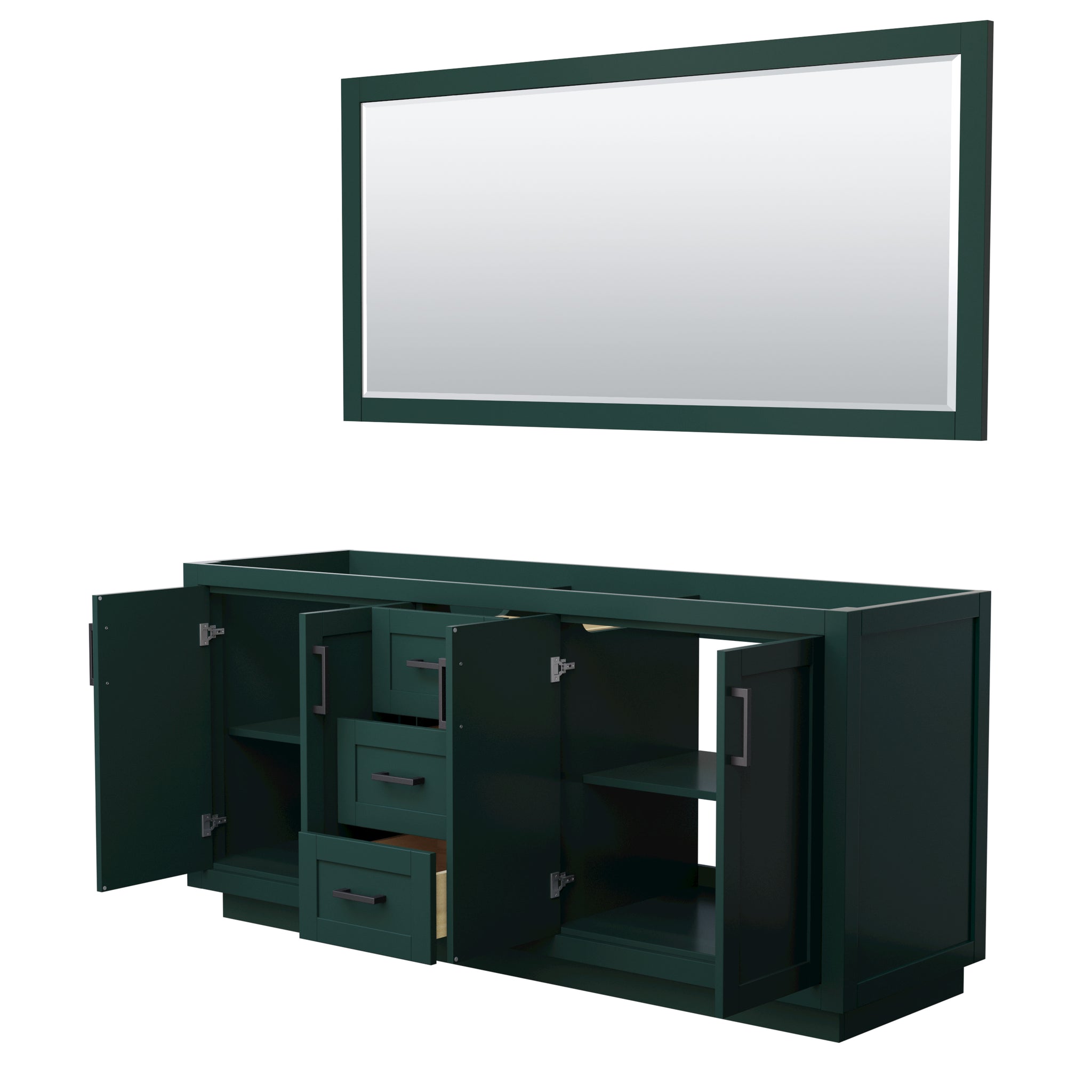 Wyndham Miranda 72 Inch Double Bathroom Vanity in Green, No Countertop, No Sink, Matte Black Trim, 70 Inch Mirror