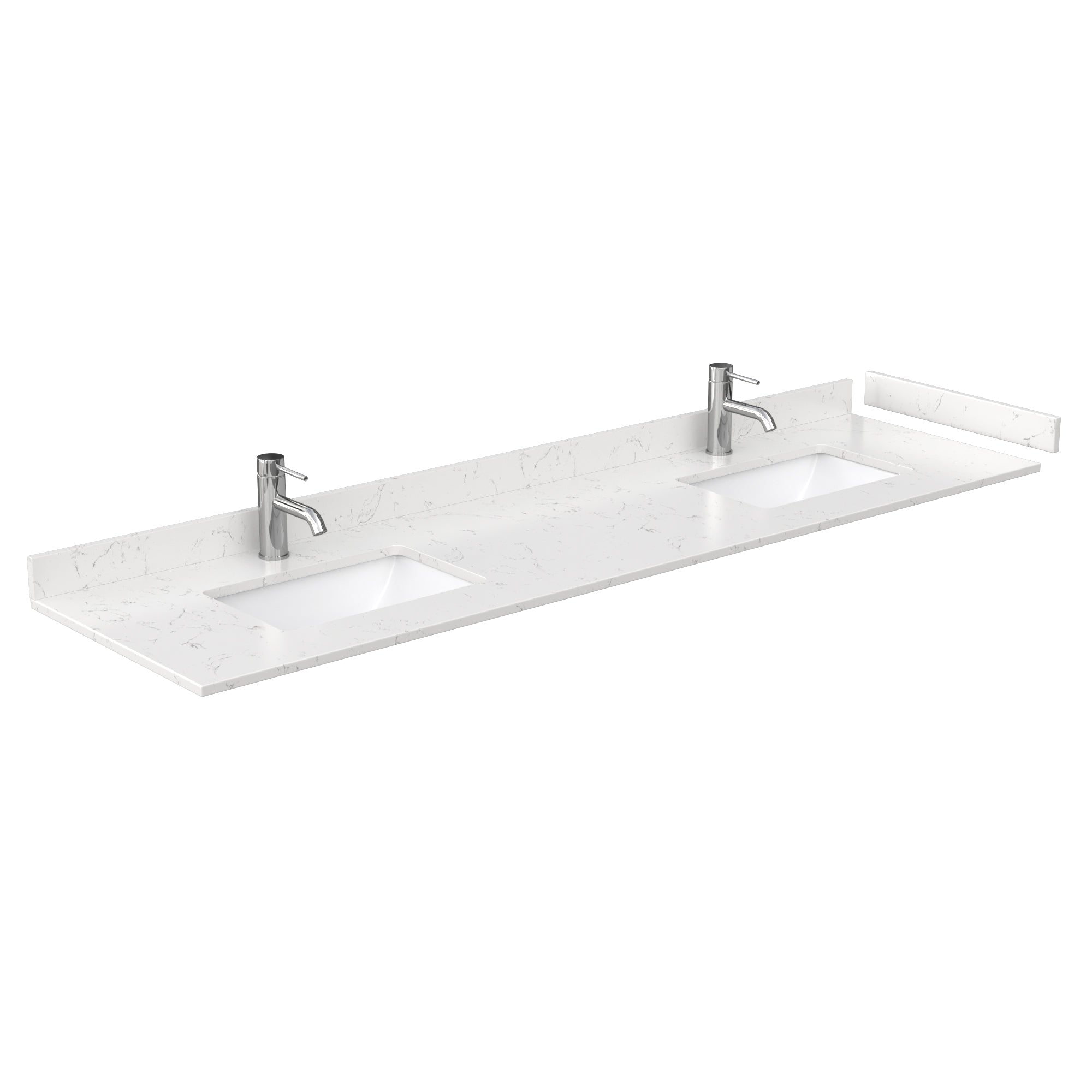 Wyndham Miranda 80 Inch Double Bathroom Vanity in White, Light-Vein Carrara Cultured Marble Countertop, Undermount Square Sinks, Brushed Nickel Trim