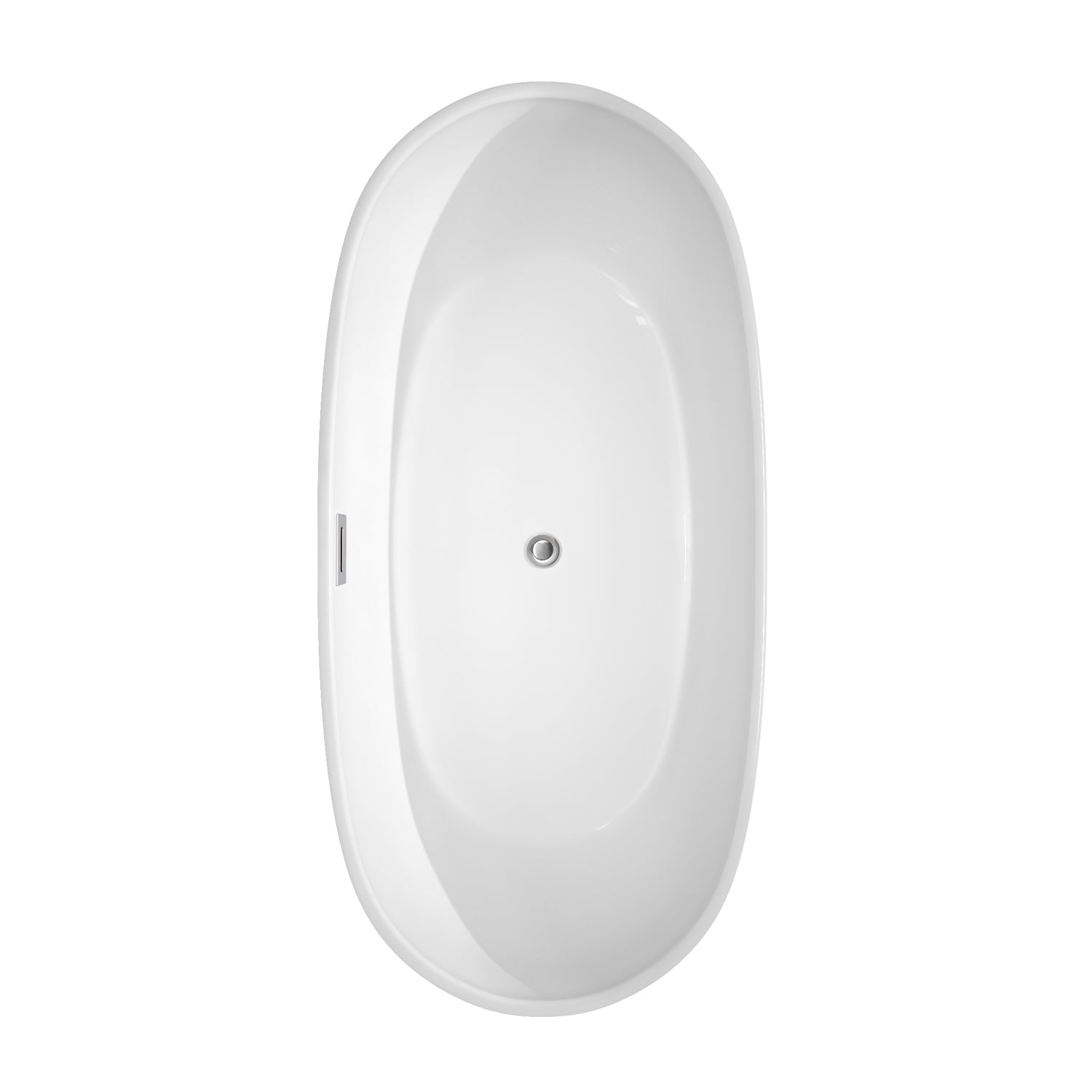 Wyndham Rebecca 65 Inch Freestanding Bathtub in White with Polished Chrome Trim and Floor Mounted Faucet in Brushed Gold