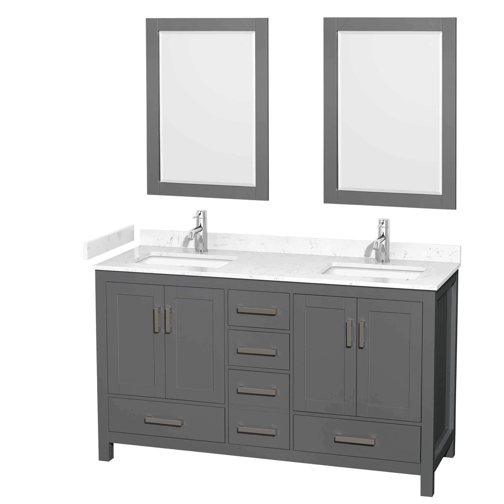 Wyndham Sheffield 60 Inch Double Bathroom Vanity in Dark Gray, Carrara Cultured Marble Countertop, Undermount Square Sinks, 24 Inch Mirrors