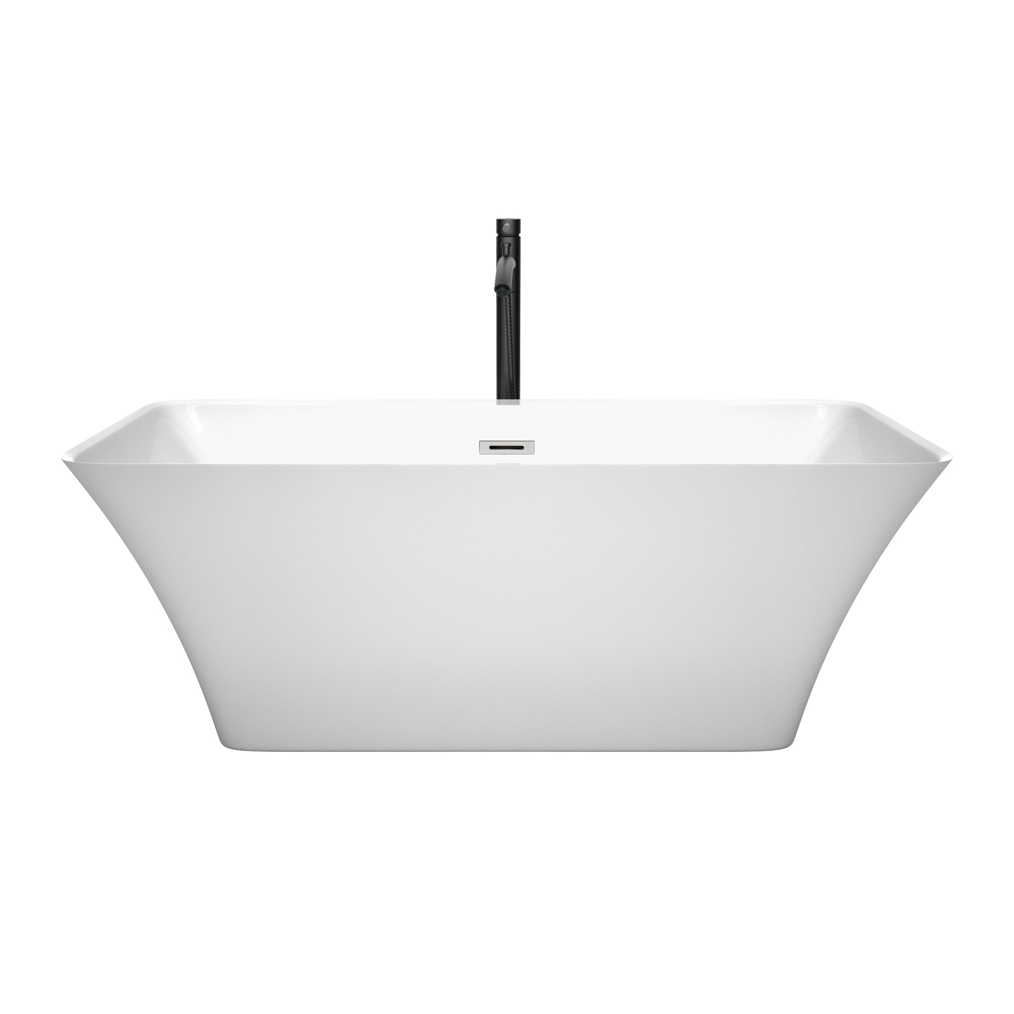Wyndham Tiffany 59 Inch Freestanding Bathtub in White with Polished Chrome Trim and Floor Mounted Faucet in Matte Black