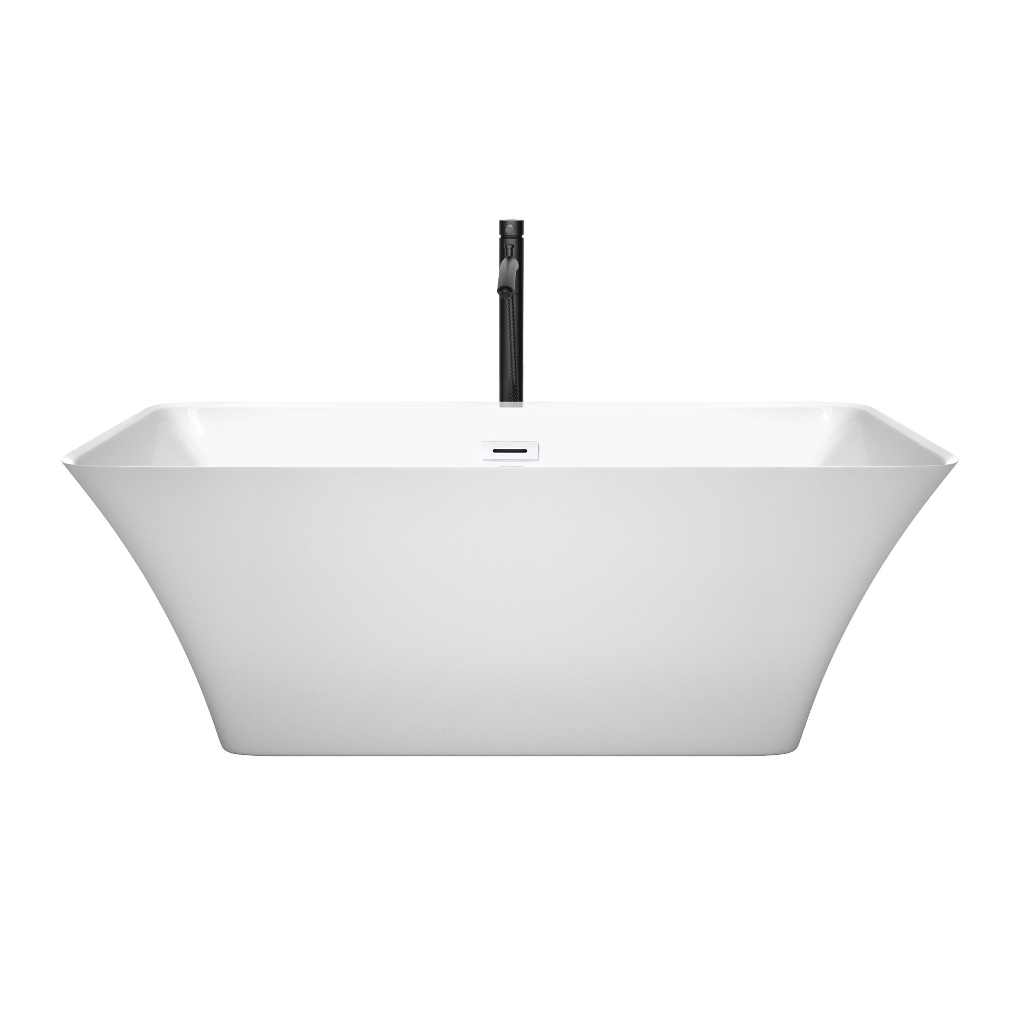 Wyndham Tiffany 59 Inch Freestanding Bathtub in White with Shiny White Trim and Floor Mounted Faucet in Matte Black