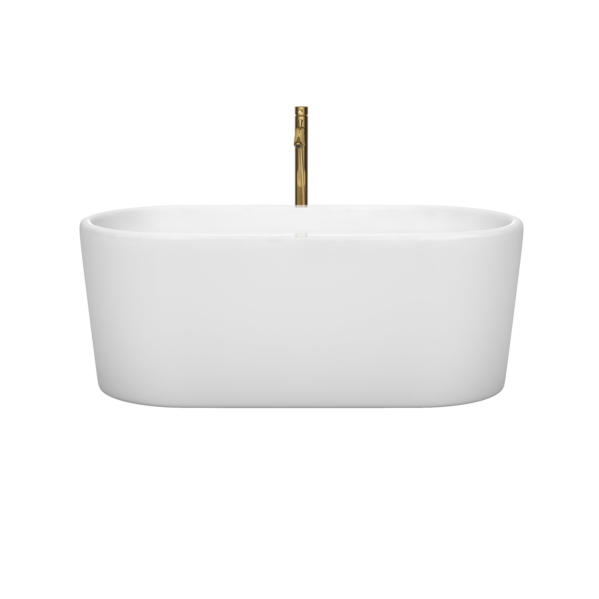 Wyndham Ursula 59 Inch Freestanding Bathtub in White with Shiny White Trim and Floor Mounted Faucet in Brushed Gold